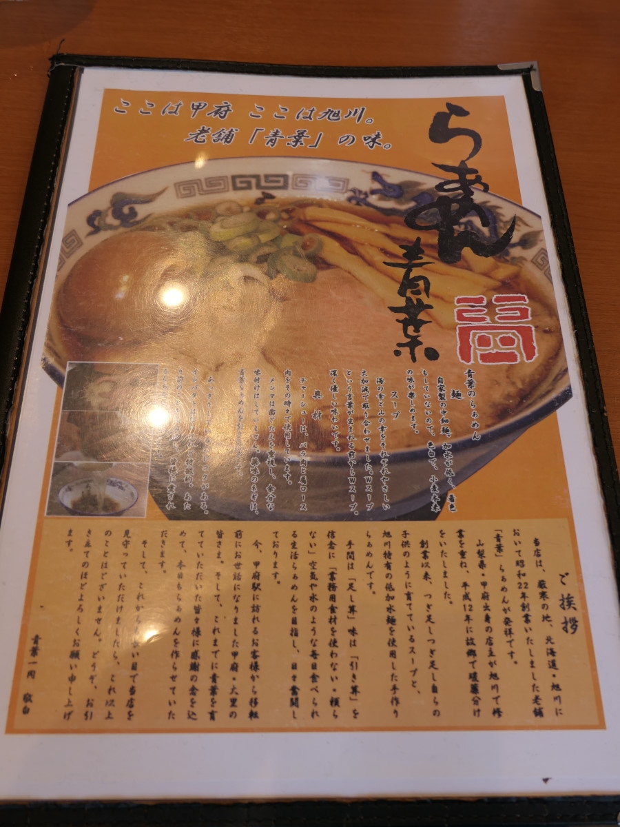 何も甲府に行ってまでチェーン店に入ることもなかろうにと我ながら思いますが、下山後にがっつりC級ラーメンを食べたくて、駅周辺をウロウロしましたが土地勘のない悲しさ、見つけられず止む無く駅ビルに逃避。