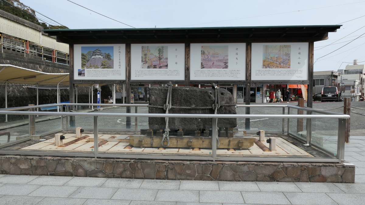 伊豆稲取駅前に巨大な石が置かれていますが、これはかつての江戸城建築に使われた「築城石」を展示したものです。
