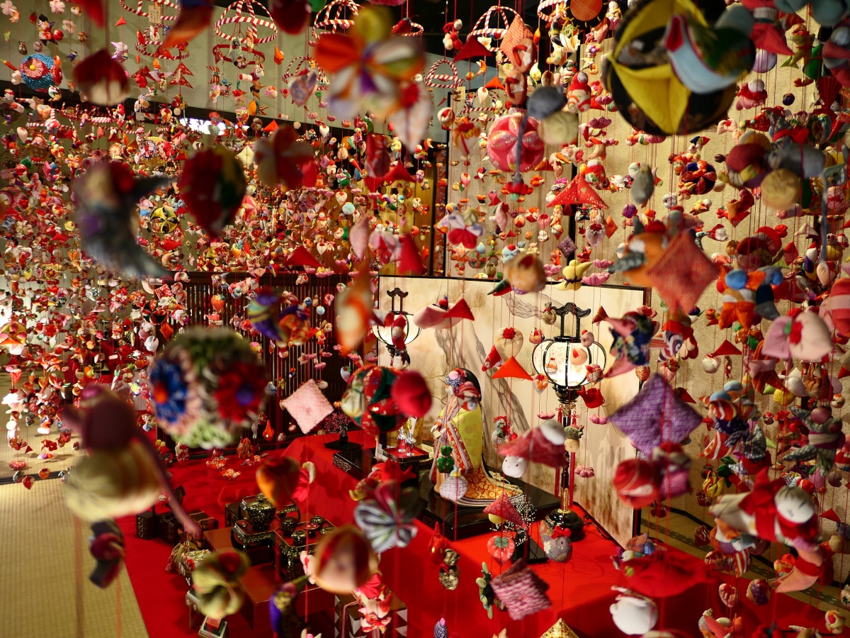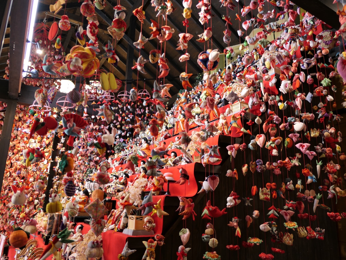 展示会場となる2つの施設では、吊るし雛自体も新しく、古着の端切れで作ったという庶民的な感覚はありませんが、手作りのぬくもりは十分伝わってきます。