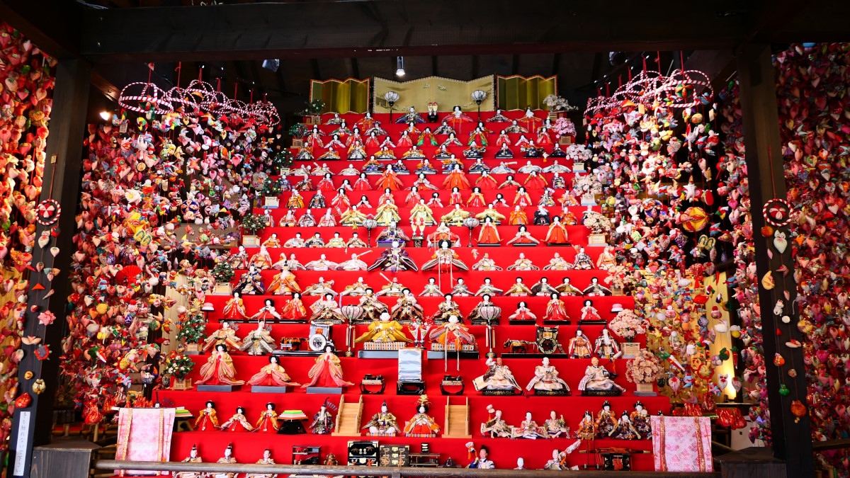 その規模、118段。最下段からは最上段が見えないほど。そこにびっしりと雛人形が並ぶ光景は確かに圧巻です。