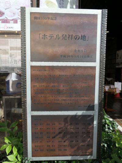 1F店舗入口の脇に「ホテル発祥の地」と書かれたプレートが確認できます。