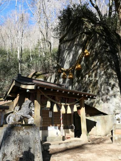 何より目に付くのは崖に張り付くような巨岩。これがこの神社のご神体です。