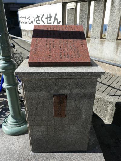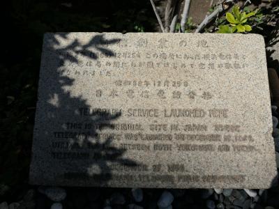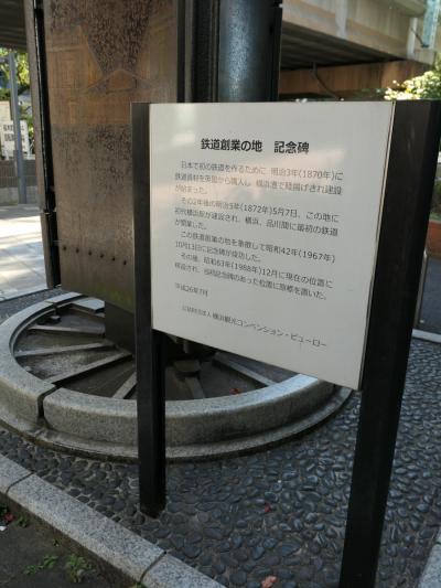 ところが、横浜側の「発祥の地」碑は隅っこに追いやられて少しかわいそう。