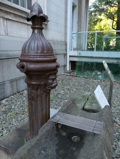 この共用栓は、日本最初の近代水道となった横浜水道創設時市内各所に配置されていたものです。当時家庭内に蛇口を引く例は少なく、路頭の共用栓から水の供給を受けるのが一般的だったそうです。