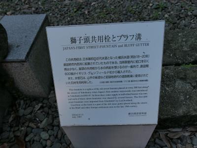 その記念碑や遺構は野毛山公園にありますが、開港資料館中庭に展示されているのは『獅子頭共用栓』と『ブラフ溝』です。