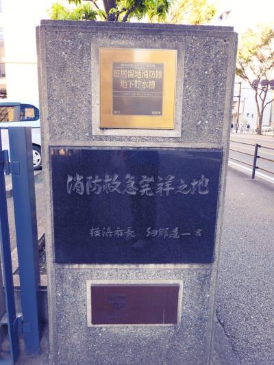 「旧居留地消防隊地下貯水槽」の遺構とともに、「消防救急発祥之地」の碑が建てられています。
