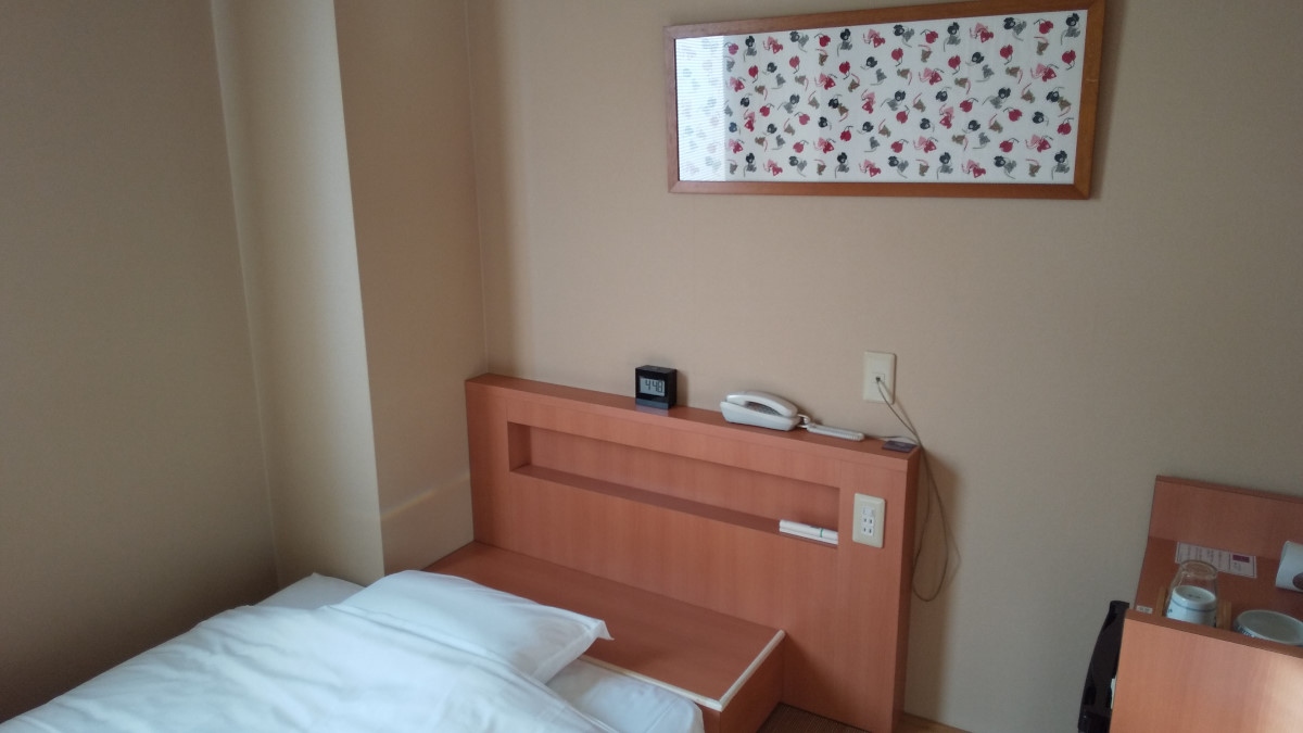 正直不安と興味半々でしたが、部屋は和室ではなく完全ビジネスホテル仕様、畳敷きの上に低床のベッドが置かれています。