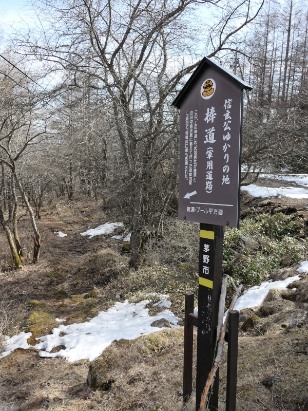 今回、蓼科山の登山口である女乃神茶屋の脇に、「上の棒道」がありました。