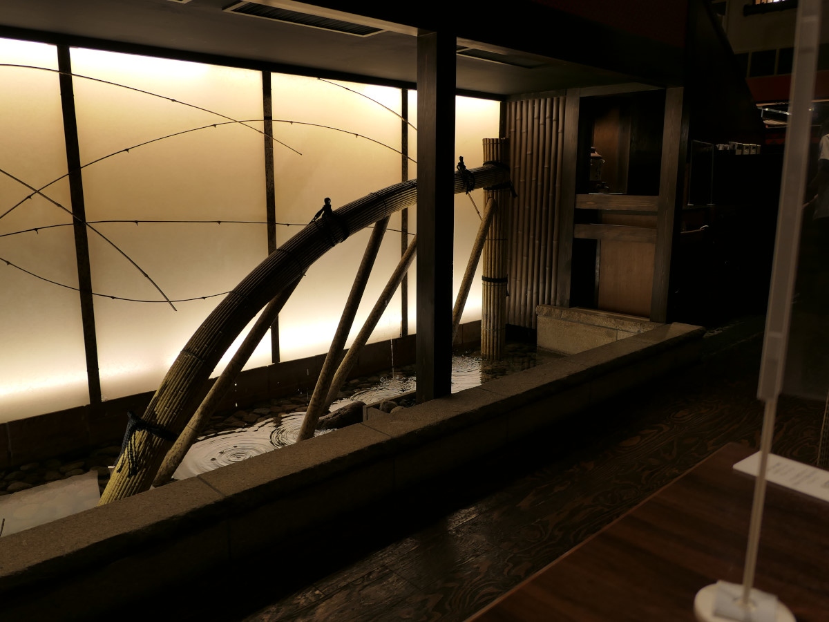 間接照明の店内は意外に広く、テーブル間の距離も充分に取られていて、アクリル板もきちんと設置され安心です。