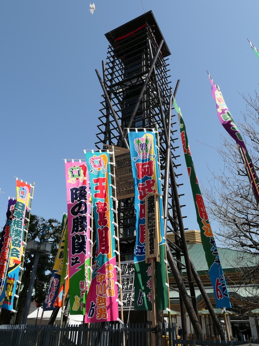 両国国技館の入口脇にそびえる櫓、高さはおよそ16mもあるそうです。