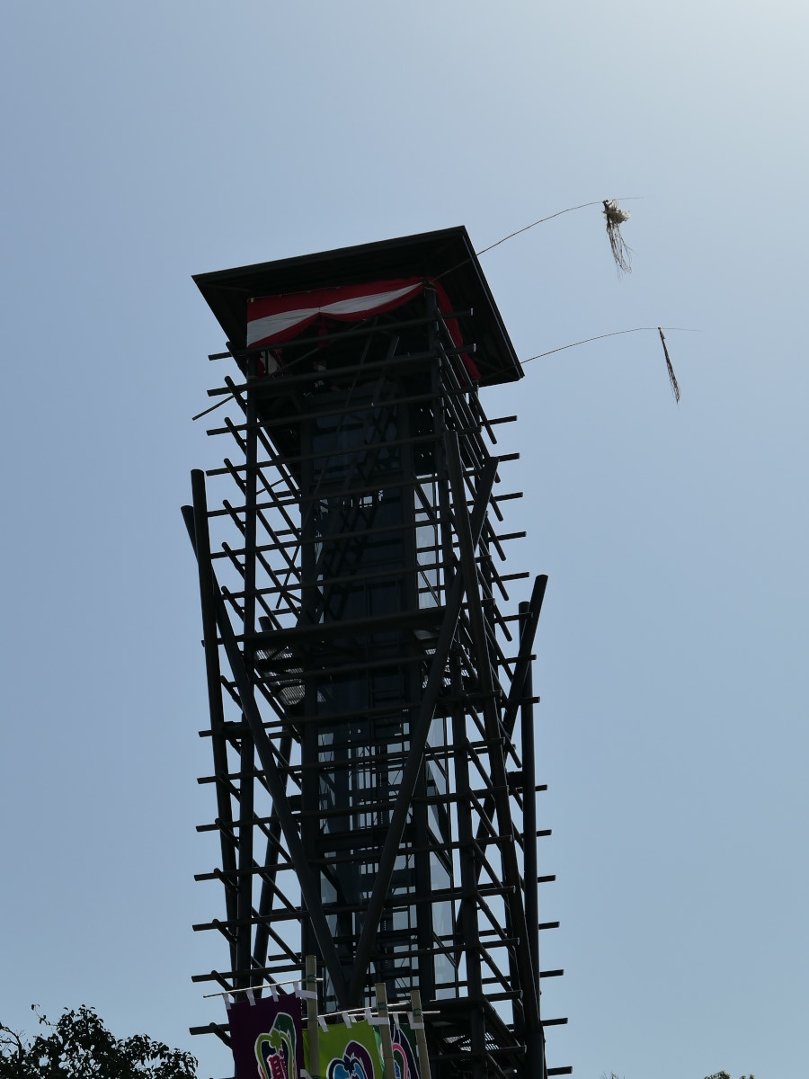 昔は文字通りよじ登っていたそうですが、現在の櫓にはなんとエレベーターが付いています。ただ、櫓のてっぺんは2m四方程度とのことで、ここに大人が2人入るのはかなり狭いでしょう。