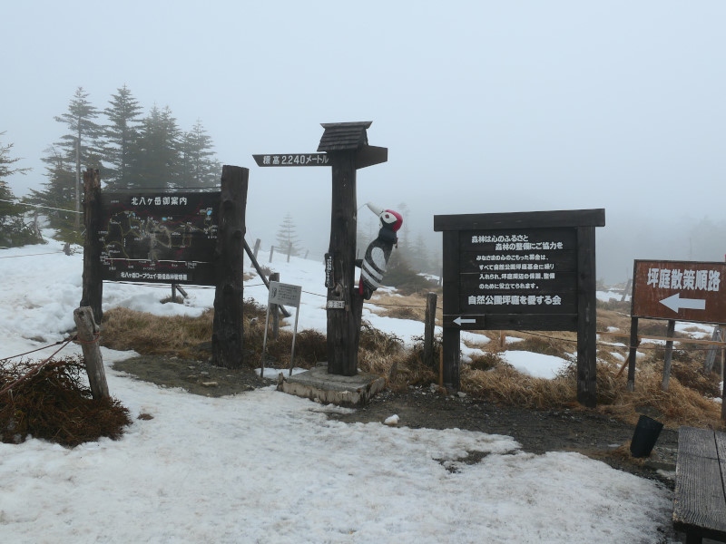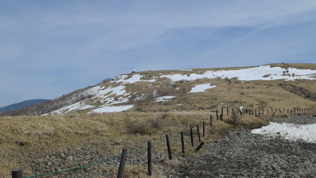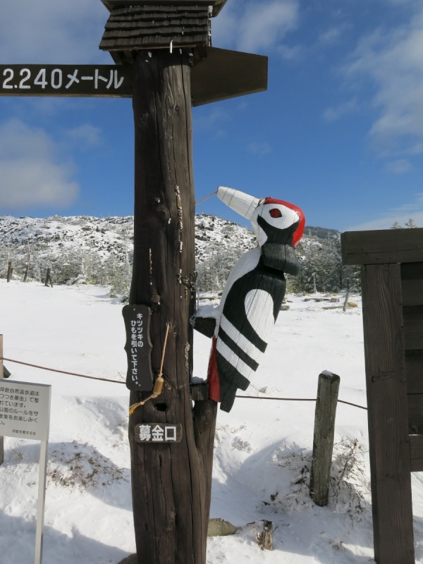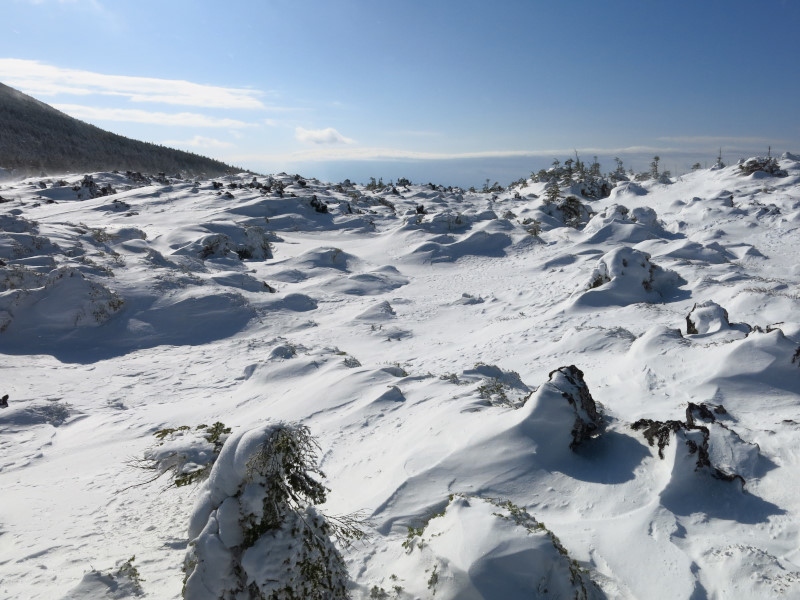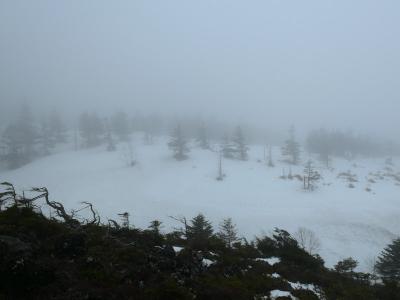 今回、雪景色を期待して行ったのですが、森林限界まで雪がなく、山頂直下に凍った残雪という残念な結果となりました。