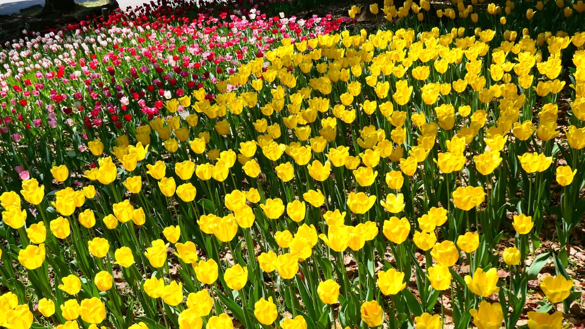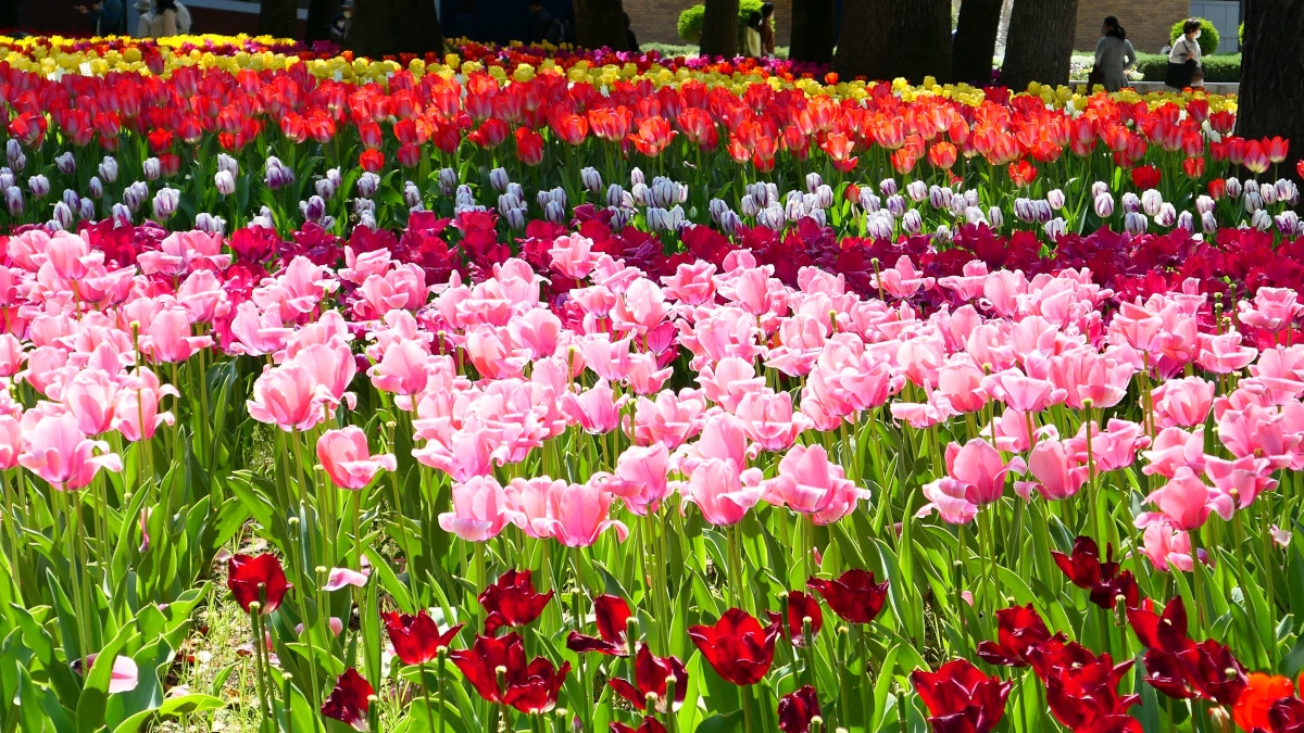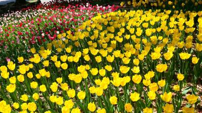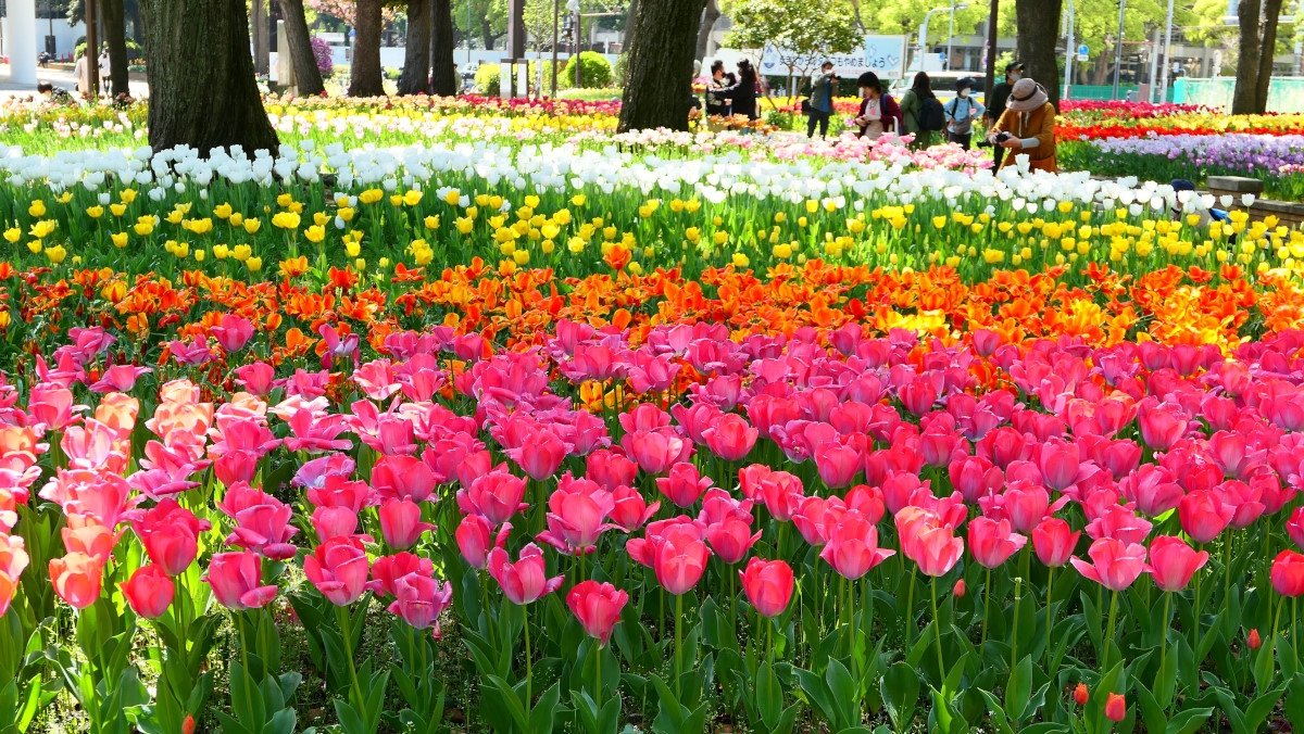毎年3月下旬から4月上旬にかけて、70品種10万本を超えるチューリップが咲き乱れます。