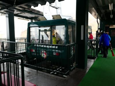 霧に強風、いつもなら見事な眺望も一切なし。コロナ対策のため天井の換気口を開けたまま運行しており寒い!