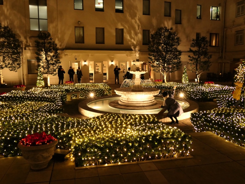 毎年冬になると、「光の庭園」と銘打って中庭が華やかなイルミネーションで飾られます。