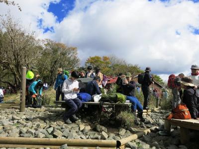 一年を通して人気の山なので、山頂も休憩する人で賑わいます。ともかく早目にスタートすることが肝要かと。