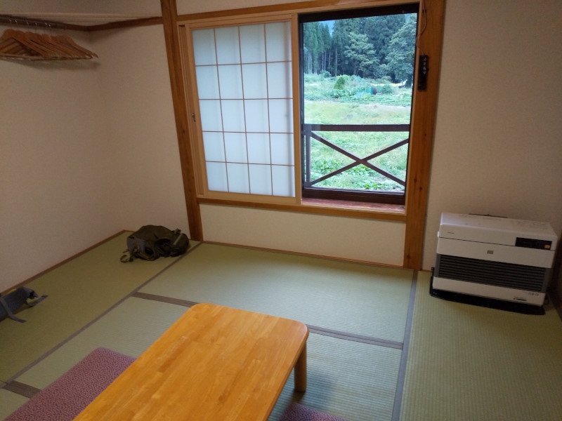 ツイン洋室で予約しましたが、案内されたのはなぜか和室。フロントの人が間違ったようで(笑)、こちらとしては、より広い和室で思い切り手足を伸ばして休養できました。登山前泊で早朝出発だったので素泊まりにしましたが、周辺には食事処も商店も全くないので、そのつもりで利用した方が良いでしょう。(コンビニはクルマで5~6分)- 旅行時期