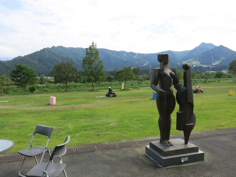 芝生を走るバギーのレンタルもあり、今泉記念館には棟方志功氏らの作品が展示されていたり、もちろん地産の食材も購入できます。