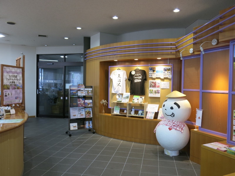 1階は「雪国交流館」として南魚沼市内の観光情報をそろえ、テラスで休憩もできます。