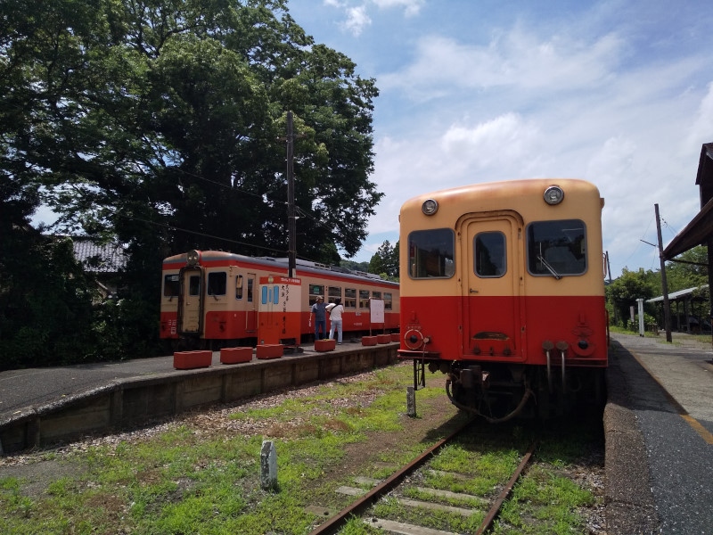人が住むエリアが多いのか、いすみ鐡道と違って2両編成です。