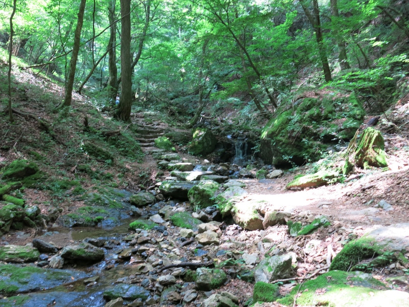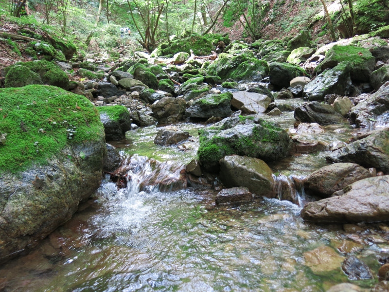 長尾平からはイヤと言うほど下り、下り切った所に七余の滝、それを過ぎると苔むした岩と渓流のエリアに入ります。