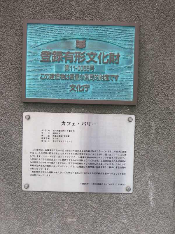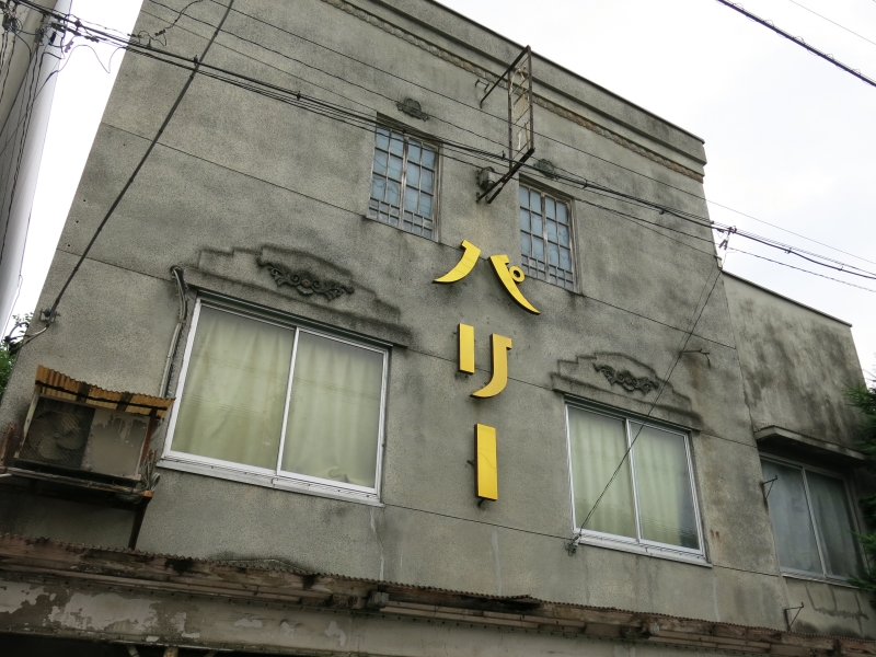 隣はあのパリー食堂、向かいは小池煙草店です。安田屋の建物も充分レトロで、外壁や窓枠の装飾がいい味出しています。