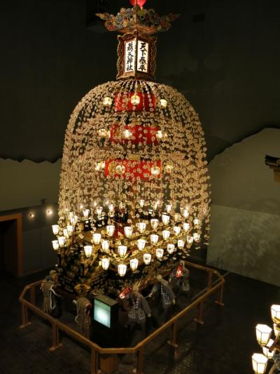 ともかくこの屋台と笠鉾が見事で、強烈なインパクトがあります。展示ホールは吹き抜けになっているので、2階に上がると、これらの上部を見下ろしてかつ至近距離で見ることができます。