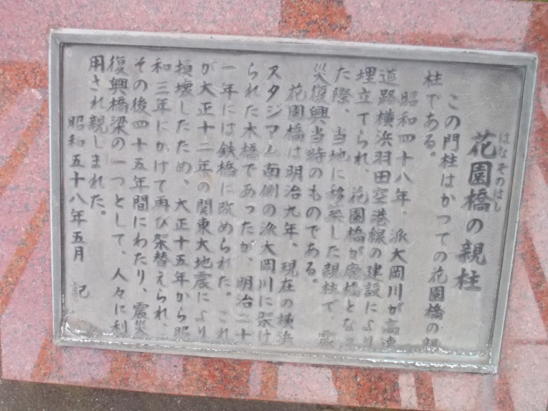 これが「花園橋の親柱」です。(中学校の校門は別にあります)