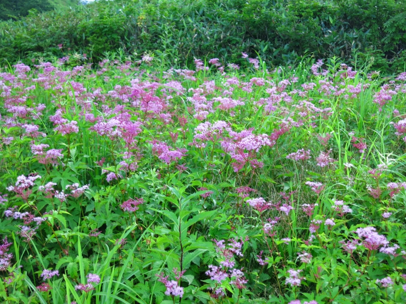 カタクリをはじめ、チングルマ、クガイソウ、ヤマブキショウマ、シモツケソウ、タカネナデシコ,イワギキョウ、カライトソウ、ニッコウキスゲなどなど、実に多くの高山植物が一堂に会しています。