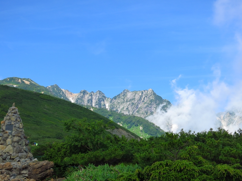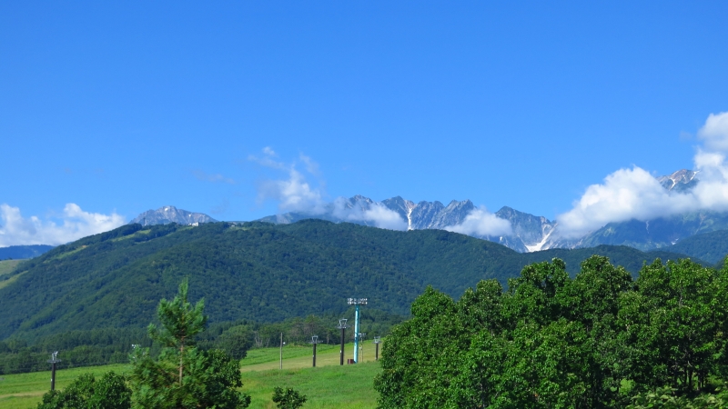 ガスが出ることも多く、白馬山系のスカッと晴れた姿を見られないことも多いのですが、少し待てば切れ間も出てきます。