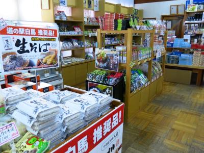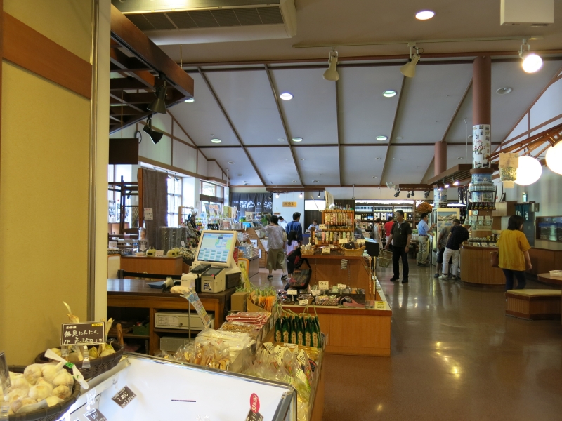 売店はそれほど充実していませんが、誰でも利用できる食堂があり、外にはおやきやソフトクリームのカウンターもあります。
