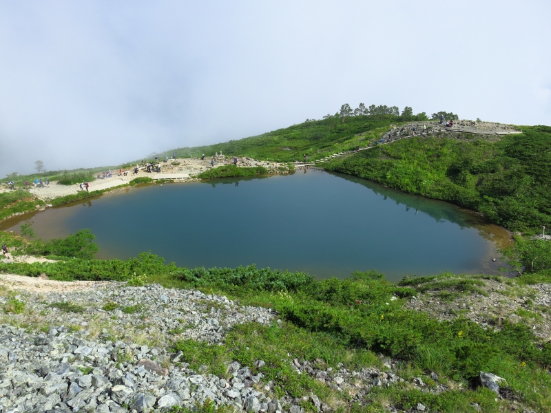 しかし、ガスが出ることも多く、旅行パンフレットにあるような絶景は意外にお目にかかれません。池の周囲には、ガスの切れ間をじっと待つカメラマンが必ずいます。
