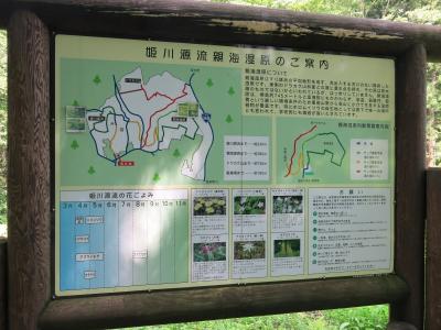 姫川源流自然探勝園は、この小川の周囲を木道で散策できるようになっており、木立の中、清流の音と時折抜けていく風で涼やかです。