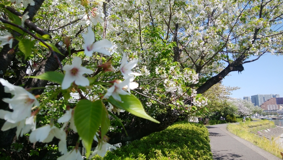 運河沿いは「しながわ花海道」と名付けられた散歩道で、手入れの行き届いた花壇になっています。