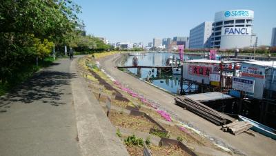 釣船などが係留されている運河沿いに散歩道があり、傍らの土手は近隣の商店会や小学校によって四季折々の花が丹精されています。