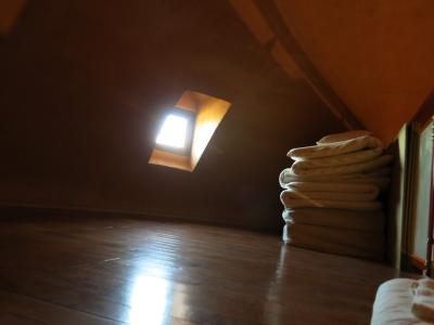 部屋はなかなか広いものの、ベッドが2台置かれているのでちょっと狭め。ロフトが付いているのは面白いですね。(一人だったので使いませんでしたが)