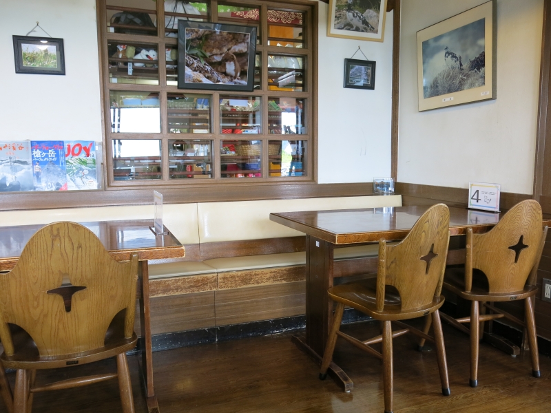 ここは一昨年宿泊した宿の喫茶室。木を基調とした明るく落ち着いた雰囲気。