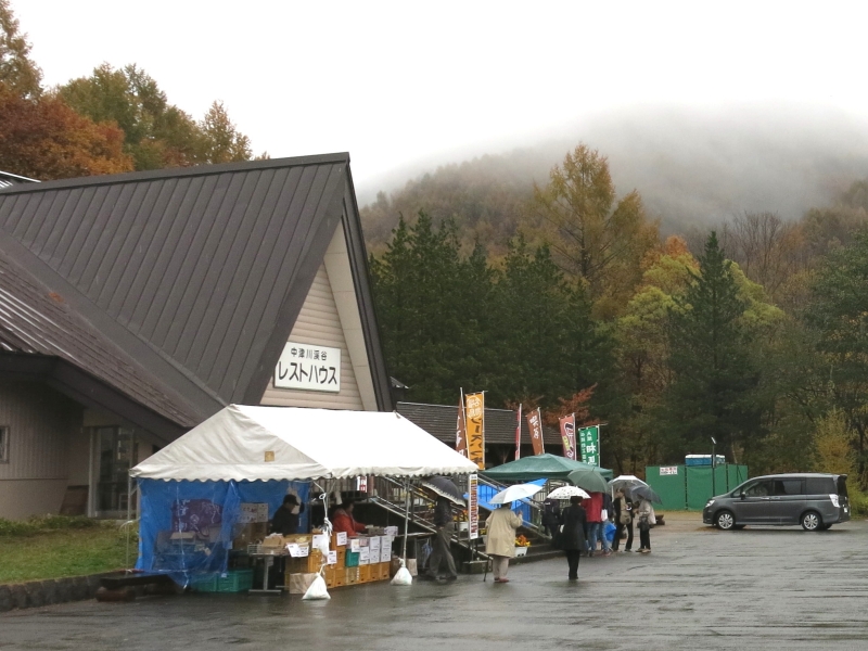 中津川渓谷そばにある休憩処。無料大駐車場を抱え、紅葉のピーク時にはクルマが入りきらないほど、また女性専用の仮設トイレを設置するほど混雑します。