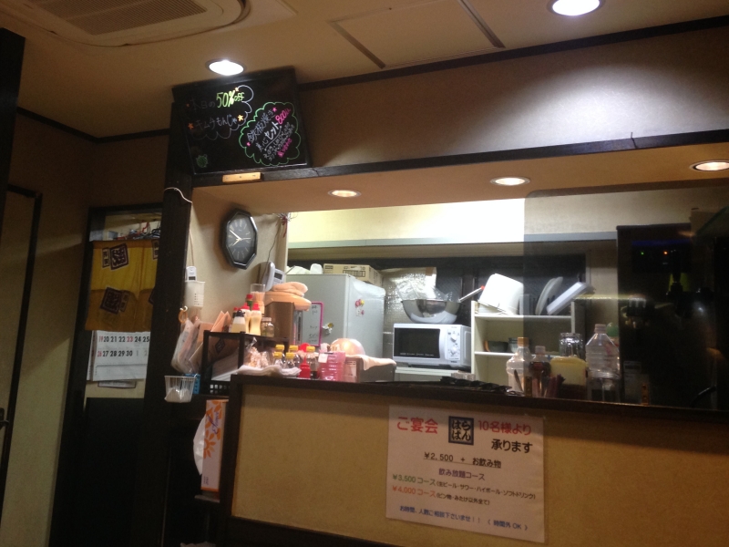 屋台に毛の生えたような店舗なので狭い、その上、通りに面した店の入口は厚手のビニール製カーテンのみなので、入口に近い席はとにかく寒い!