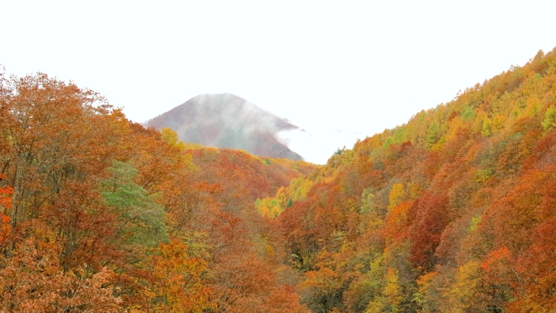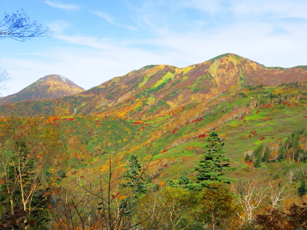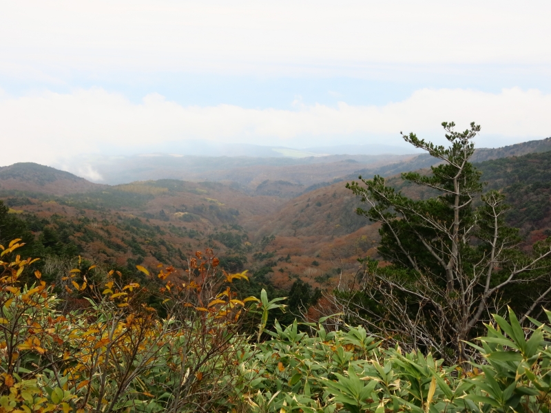 眼下は紅葉の山肌が広がり、視線を上げれば火山特有の荒削りな光景が広がります。