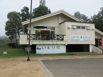 外観は驚くほどあっさりしています(建物と言うより看板が淡泊過ぎるかも)が、店内はいもり池越しに妙高山を眺められる格好のビューポイントです(行った日はガスってましたが)。
