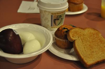 朝食は卵料理、パン、オートミールなどを自由に取ることができます。毎日変わりばえはしませんが、結構おいしくいただけます。ちなみにコーヒーはSeatlle'sBestです。