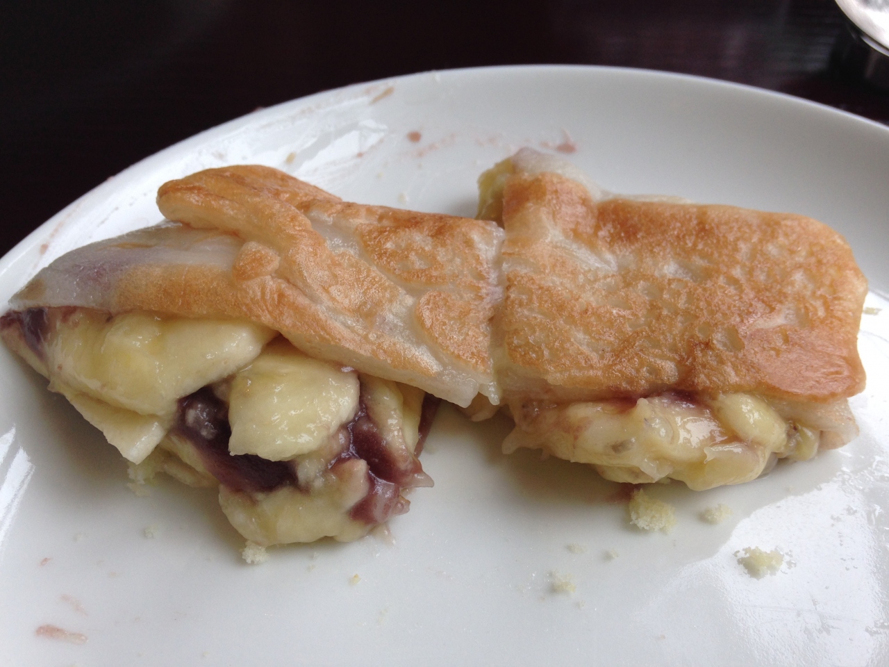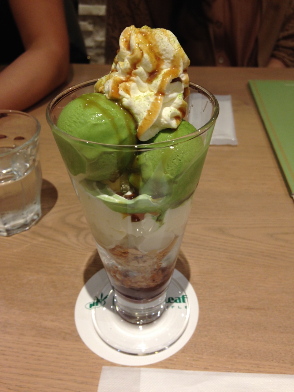 メニューを見ているとどうやらワッフルがおススメのお店のようです。友人たちはみなワッフルを選択しましたが、私は何となくパフェが食べたくて抹茶パフェにしました。抹茶アイスはハーゲンダッツ製、白玉団子、あんこ、生クリームが入ったパフェですごく美味しかったのですがサイズは小さ目…。ワッフルがボリュームがあったのを見ていただけにちょっと寂しーい。