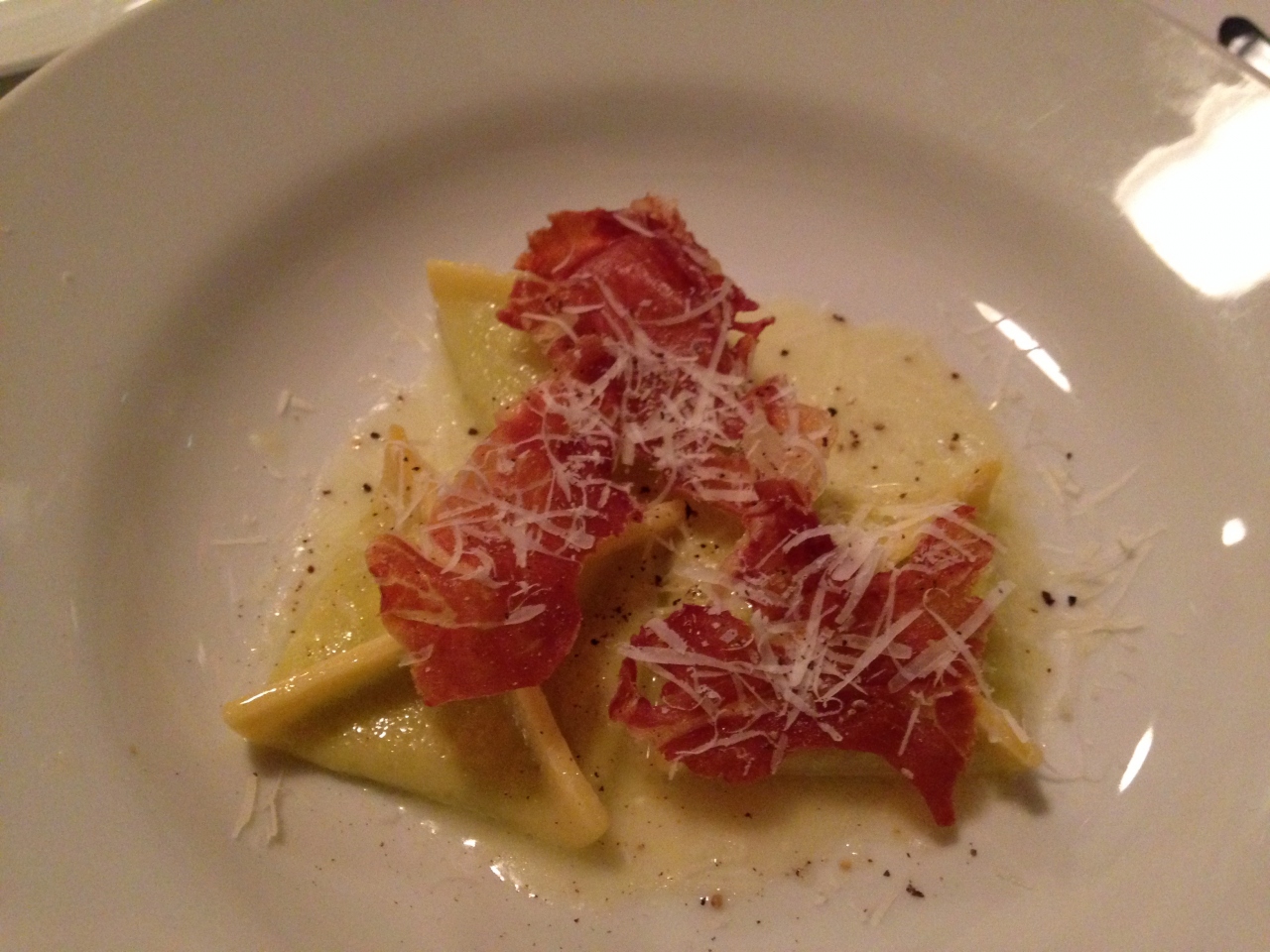 パスタはラビオリ。中身は空豆のピューレ。もっと食べられる!と思ったくらい。(聞いたところによるとこのお店のウニのパスタが美味しいらしいです。)
