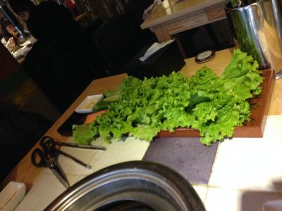 前菜、レタスは無料でたくさん出てきます。キムチなんかはお変わりも出来ます。
