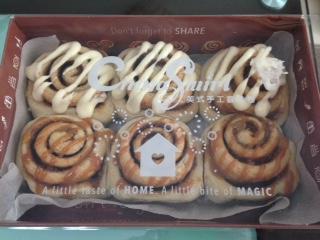 中国語を話すアメリカ人のオーナーが始めたお店で、シナモンロール、アップルシナモンロール、ナッツシナモンロールとミニのシナモンロールしか置いてないお店です。