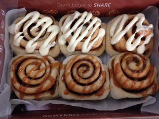シナモンロールの上にクリームチーズかキャラメルフィリングを掛けてくれるのですが量を選べます。少な目、普通、多めなど。クリームチーズ多めがおススメです。- 旅行時期