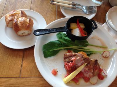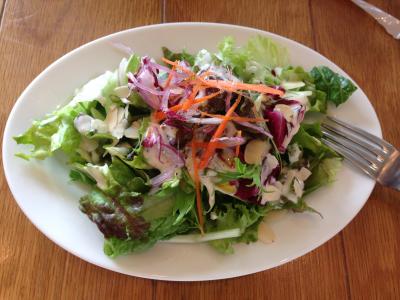 最初にサラダが出てきました。結構なボリュームのあるサラダでした。イベリコ豚は脂が乗っていてとても美味しかったです。野菜のグリルもついていて、パンまで頂くと結構お腹がいっぱいになりました。(男性には少し物足りないかも)