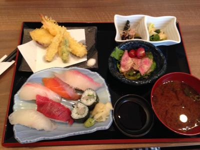 ランチメニューは定食類が何種類かあり、デザートが入った1280円のセットにしたら、天ぷら、お寿司、ローストビーフなどにコーヒーが付いてきました。ただし、写真よりも全体的にこぢんまりした定食で、デザートももっとしっかり付いていると思っていたらかなりちっちゃくてガッカリしました…。でも個室でゆっくり出来たという点では良かったかな…?ベビーカーで来ているお客さんなどもいたので、そういう人たちにも使いやすいお店なのかもしれませんね。- 旅行時期