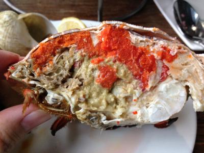 私たちは2~3人用のシーフードプラッターにしました。中でも蒸し蟹とロブスターが入った物にしたのですがムール貝、エビ、粒貝のような物などが入ってすごい量でした!!味はシンプルに蒸しただけのような感じです。ソースが何種類か用意されています。ちょっと気になったのは手を洗うためのボウルとか、おしぼりがたくさん用意されるとかそういう気遣いはありませんでした。でも店員さんのスマイルはとても気持ちが良かったです。
